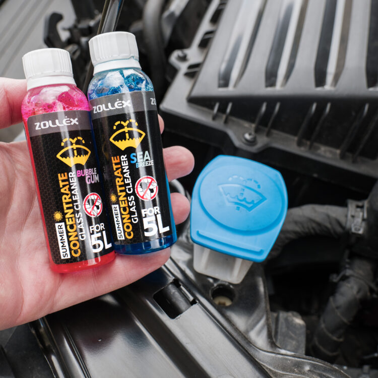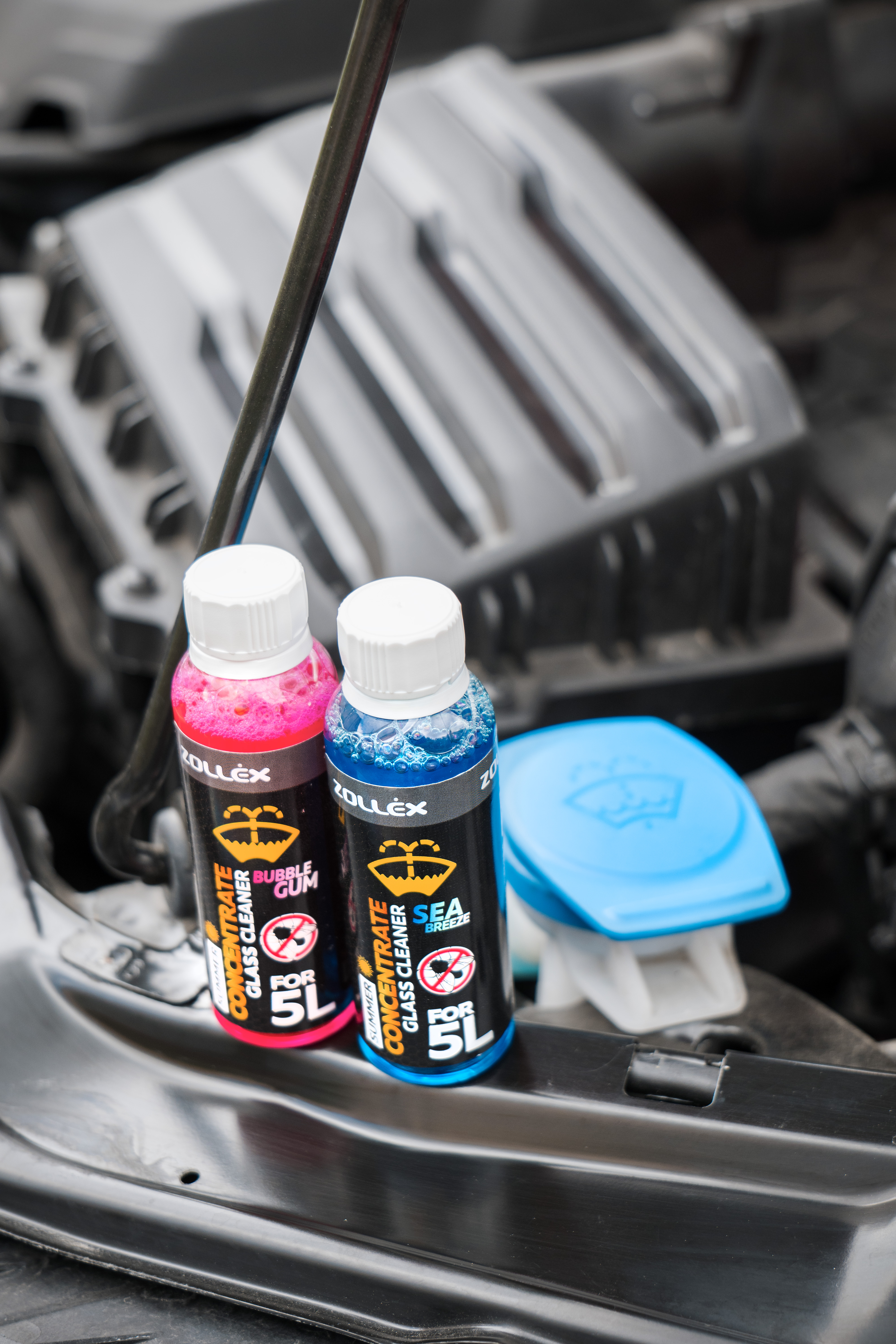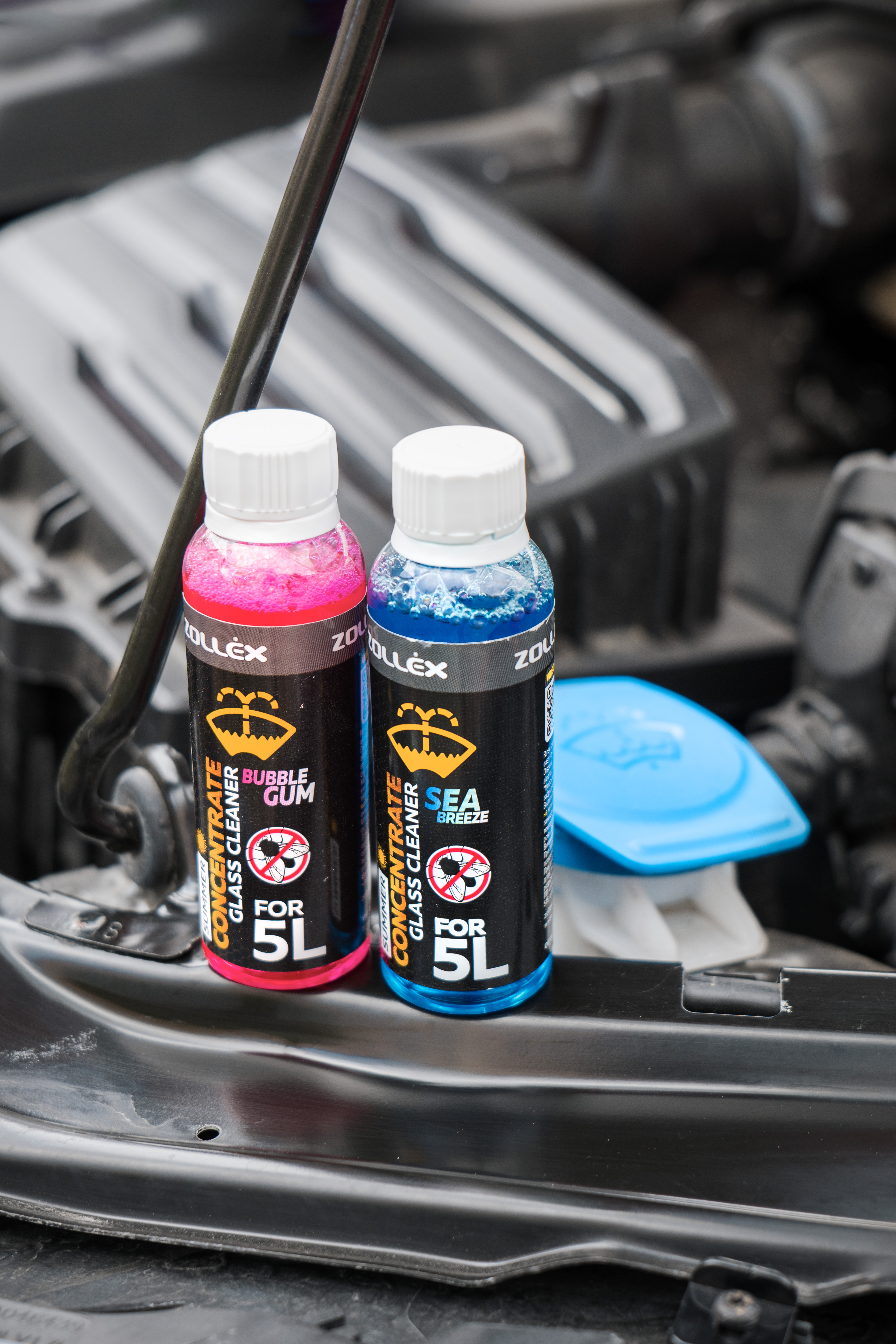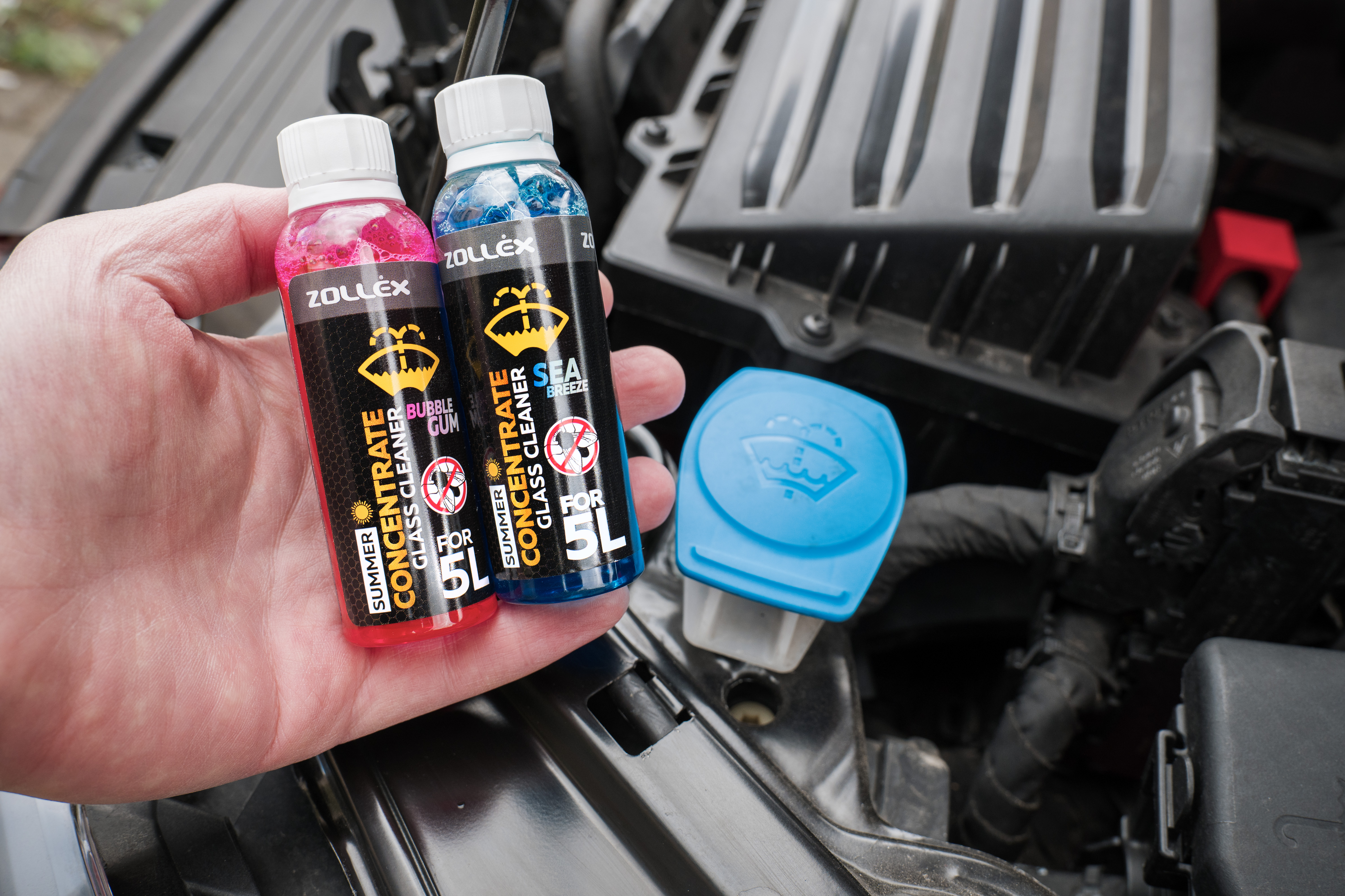 Zollex Summer Glass Cleaner Concentrate powerfully removes dirt, bugs, and road film from windshields. Just one 60 ml bottle makes 5 L of ready-to-use fluid. Safe for paint, plastic, and rubber. Leaves no streaks and adds a fresh scent.